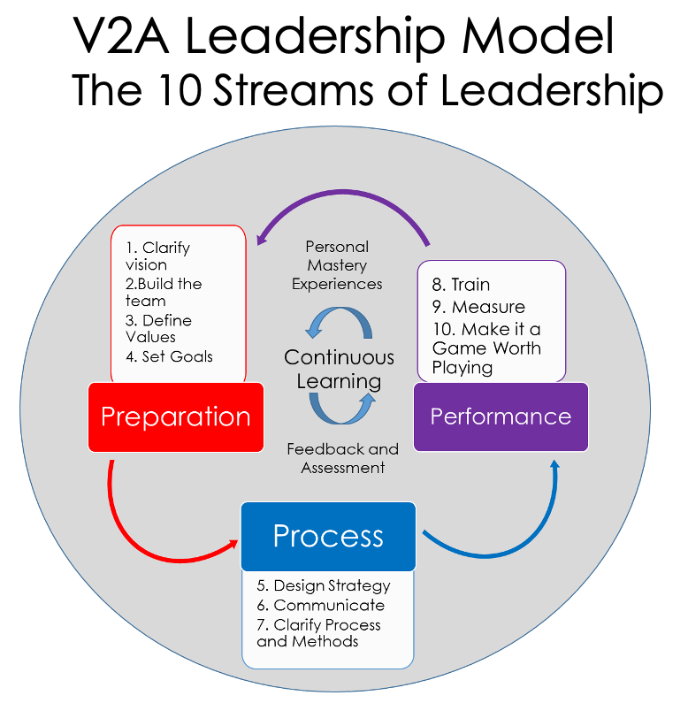 At the heart of the V2A System is a ten-part framework known as the Ten Streams of Leadership Influence. These streams are the organizing structure for everything from vision clarity to team alignment, hiring, strategic planning, communication, measurement, and more.